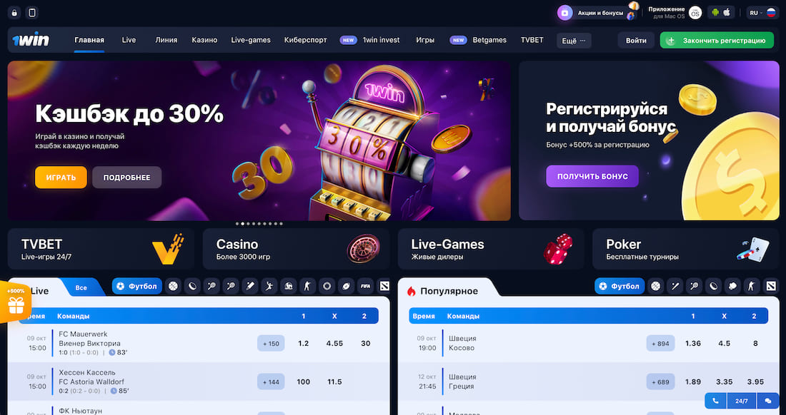 1вин - это известная букмекерская компания, которая предоставляет своим клиентам большой выбор спортивных состязаний и игорных удовольствий. Предприятие было основано в 2016 и с того времени завоевало доверие десятков миллионов покупателей со всего мира.